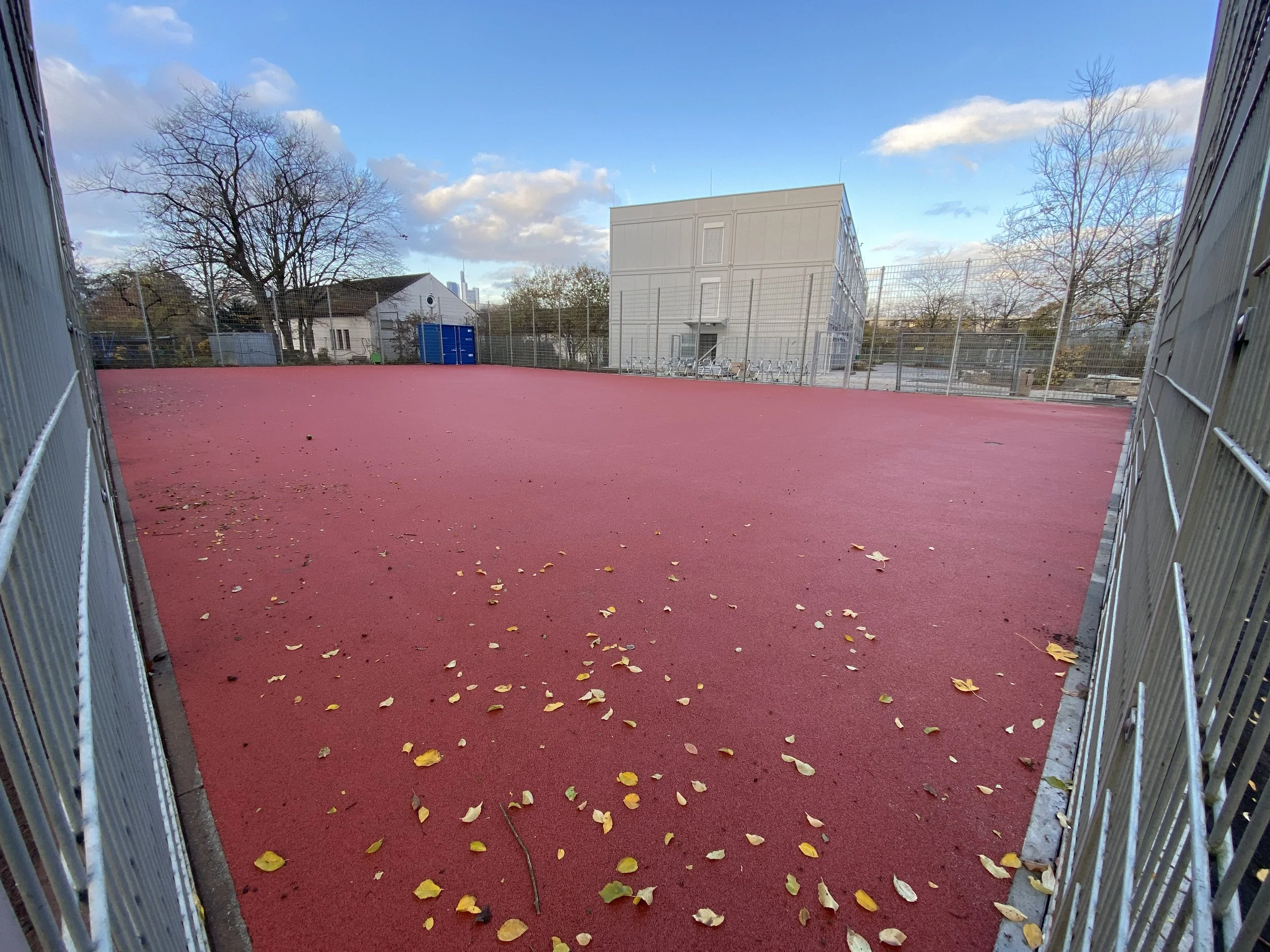 Eröffnung des Ersatz-Schulstandorts zum Schulbeginn am 18.8.2025. Die Schulfläche des Gymnasiums Süd befindet sich im wertvollen Tiroler Park in Frankfurt-Sachsenhausen. Ein Merkmal ist der baumüberstandene Schulhof.
