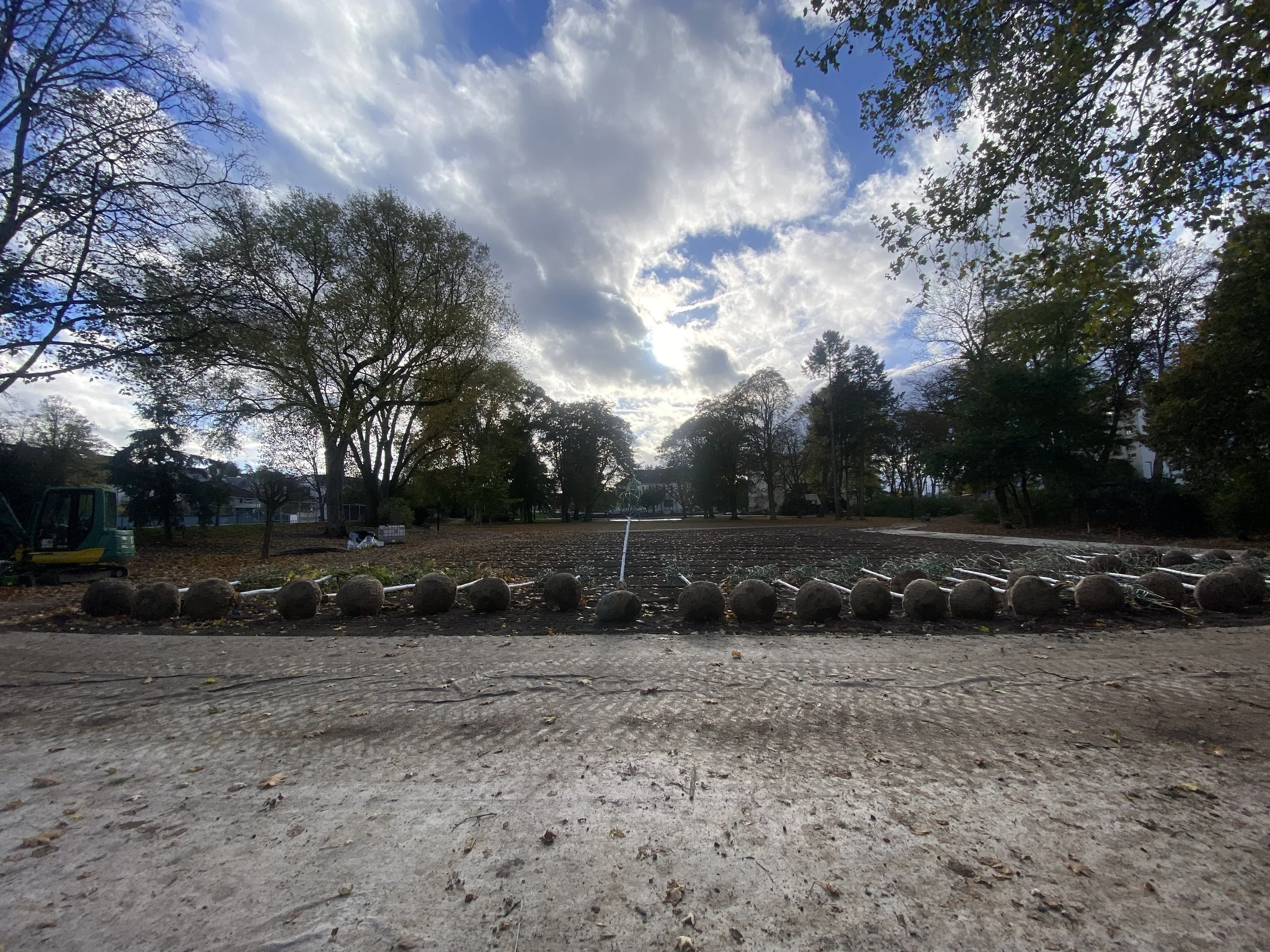 Zunehmend widmen wir uns auch dem sehr präsenten Thema Freiräume in Wohnsiedlungen und Schulen, wie hier am Neubauprojekt am Ostpark in Rüsselsheim (Geländefreimachung). Im Zuge der Mobilitätswende bearbeiten wir das Thema Verkehr. So waren wir beteiligt an der Entstehung des ersten Radschnellwegs in Hessen. Zum Portfolio gehört auch der Straßenrückbau.