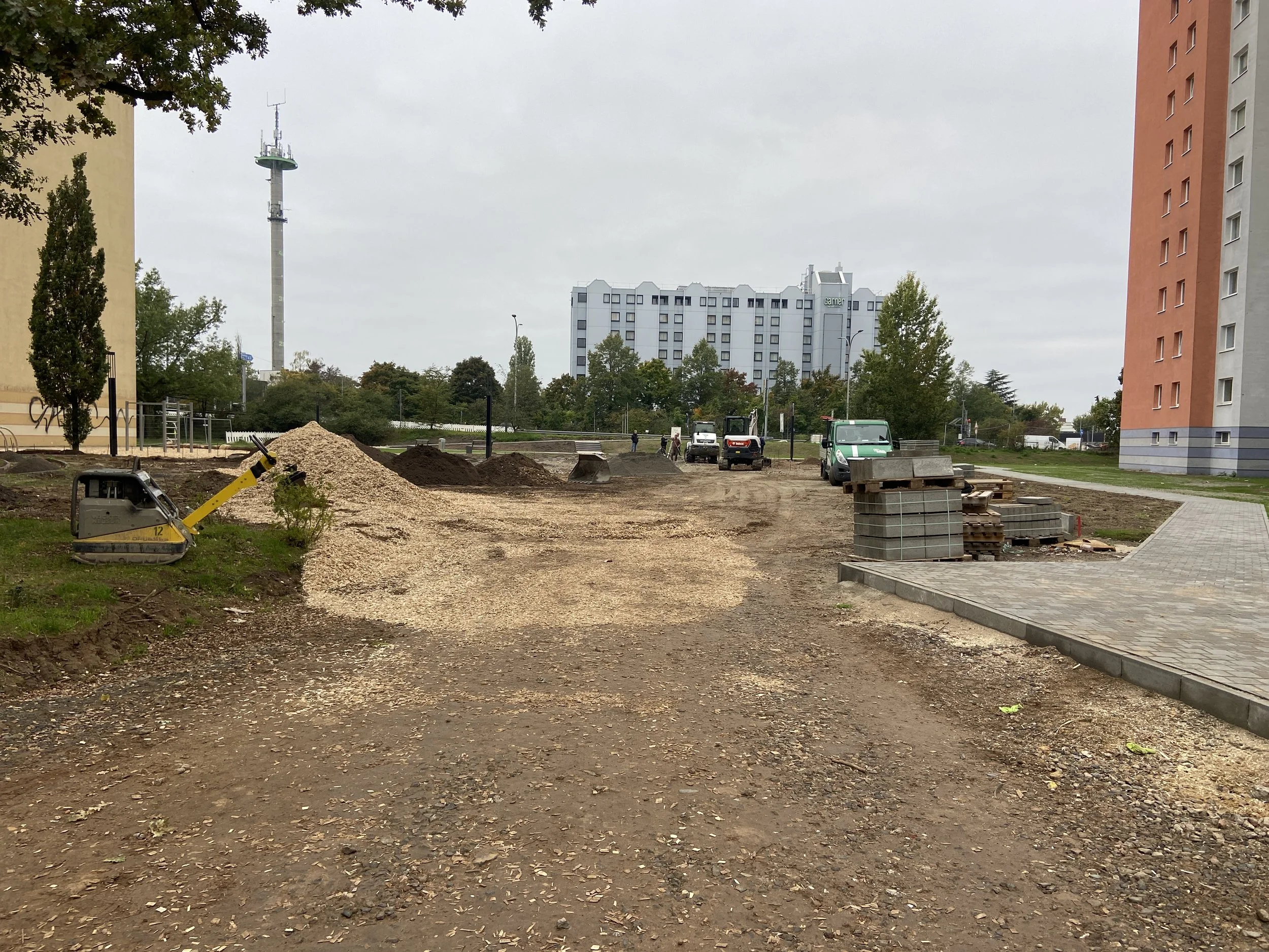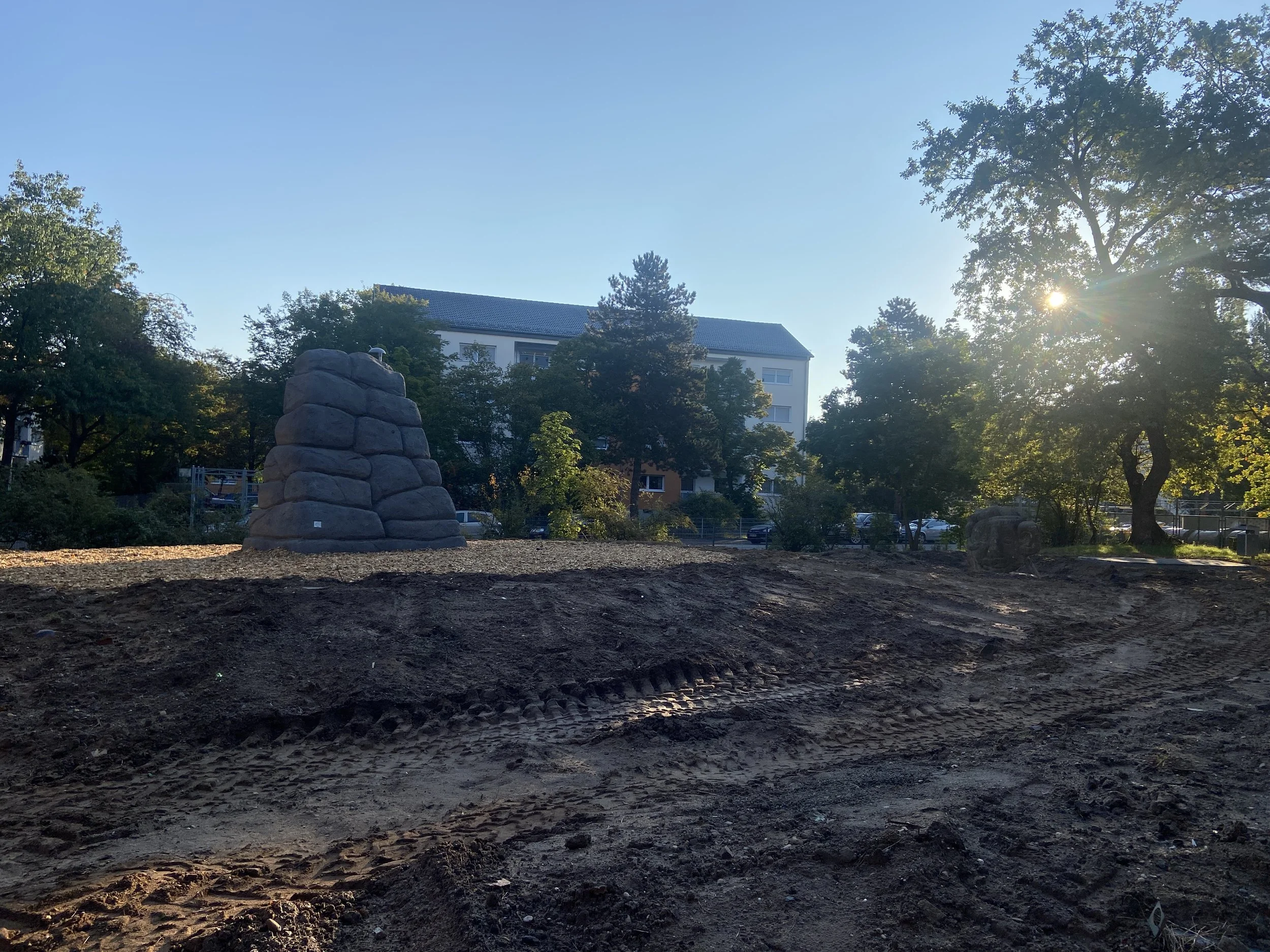 Nachdem das Parkdeck P5 neu errichtet und in die Umgebung eingebunden wurde, soll nun anstelle des 2 Parkdecks ein einfacher Parkplatz entstehen. Darum herum wird der bestehende Park neu gestaltet. Es gib dazu einen neuen Spielplatz, Aufenthaltszonen unter alten Bäumen mit einem markanten Kletterfelsen und Tisch-Bank-Kombinationen, Calisthenics-Geräte verteilt über das Gelände und verbindende Wege. Die neuen Pflanzungen werden bewusst robust gehalten, um dem hohen Nutzerdruck gerecht werden zu können.
